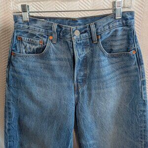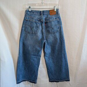 Levi’s High Rise Wide Leg Jeans Size 27 Cropped Distressed Hem Premium Denim