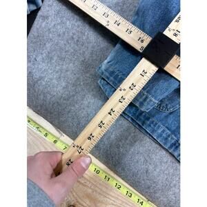 Vintage Baccini Denim Safari Jacket Womens Medium Blue Leopard Collar Belted Jean Coat Chore Barn 90s Y2K