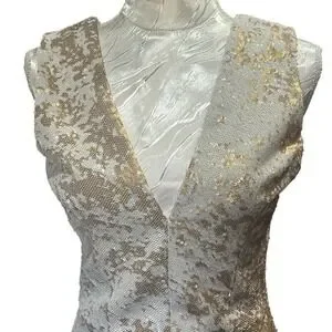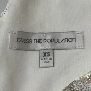 Dress the Population Sz XSmall Gold & White Sequin Mini Dress Party Stretch
