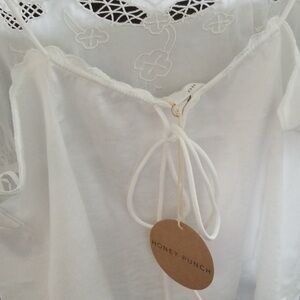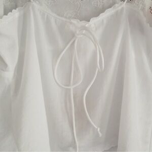Flirty size medium lace front tank with adjustable tie in the back. Really cute to dress up or down. Spaghetti straps.