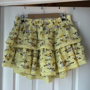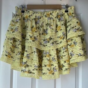 Aerie rock n ruffle printed tiered yellow floral mini skirt XL NWT lace detail
