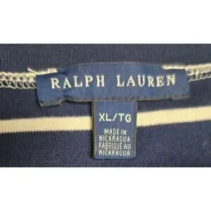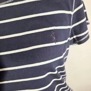 Ralph Lauren Navy White Striped T-Shirt Short Sleeve Soft Crew Neck Top Size XL