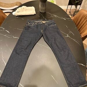 Indigo selvedge denim. Worn a couple of times, never washed. Tagged 32x32, professionally hemmed to 32x30 (true 30” inseam). Excellent condition. Asking $125.