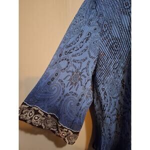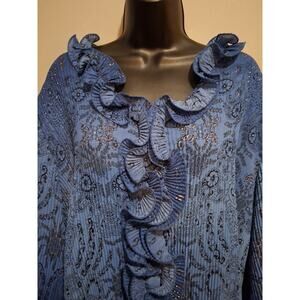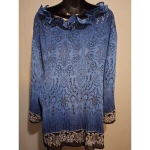 Dressbarn Shirt 2X Blue Ruffled Paisley Floral Tunic Blouse Lightweight Top