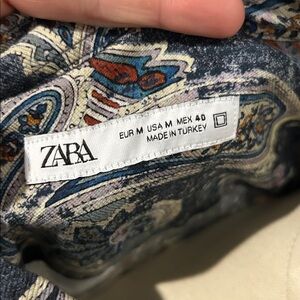 Zara Men's Paisley Blue and Orange Shirt