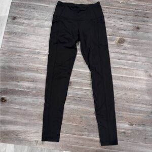 Sleek black high-waisted leggings. Perfect for workouts or casual wear. Side pockets on both sides. Good condition. Size XS.
