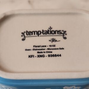 Temptations Floral Lace Light Blue 10 oz Individual Baker Dish with Trivet Set of 4