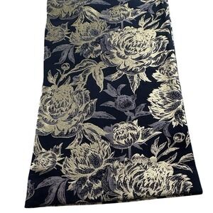Soft Surroundings Women's L Gold Floral Wide Leg Pants Black Metallic Pull On