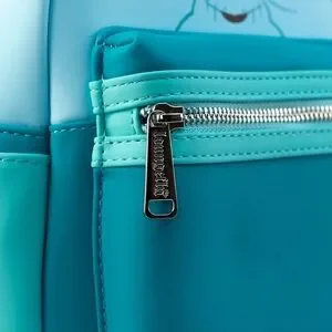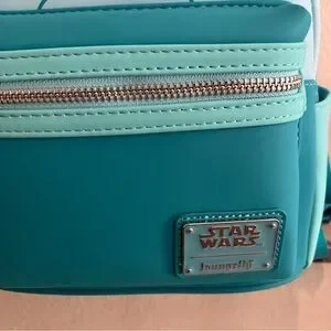 Premium vegan friendly faux leather mini backpack featuring appliqué, printed and glow in the dark details. Padded adjustable shoulder straps, hanging loop. Finished with signature Loungefly metal badge and branded zipper pulls. Exterior has zipper compartments at top and front along with external side pockets. Interior is lined in a matching colored Star Wars print with additional zipper compartment. Glows in the dark best under UV light!