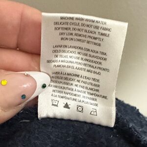 Stay warm and stylish with this navy full-zip jacket. Tab collar and zippered pockets Perfect for layering in cooler weather. The high-quality fabric maintains its shape really well and always looks polished. It is surprisingly warm with its fuzzy interior. (Now that I am post-menopausal,it's too warm for me! 🤣)