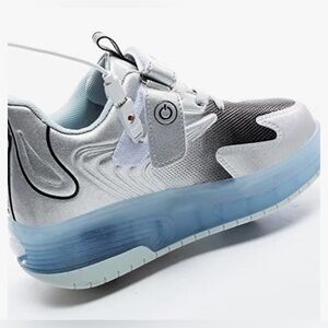 • 3 in 1 Removable Roller Skates: Can be used as Double wheel shoes, Single wheel shoes (remove the front wheel and add a cover) or Flat sneakers (hold the button behind shoes to shrink the rear wheel and remove the front wheel).