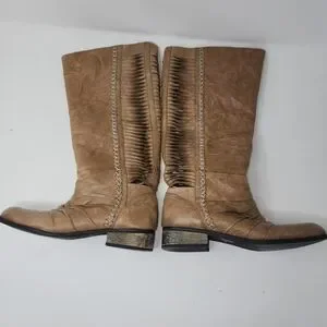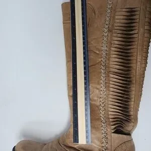 Very Volatile Fringe Riding Boot Leather Taupe women's 6.5