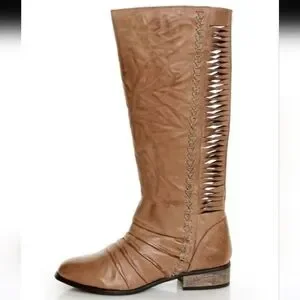 Very Volatile Fringe Taupe Ruched and Shredded Riding Boots