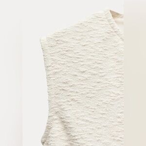 NWT. Zara ZW Collection Ecru Cotton Blend Textured Shift Midi Dress. Size M.