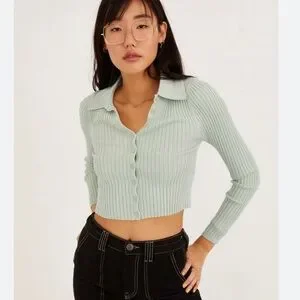 Urban Outfitters Womens Green Skylar Ribbed Button Front Cropped Sweater Size XS