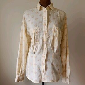 Liz Sport Vintage Top Button Down Shirt Long Sleeve Pastel Geometric Size M 90s
