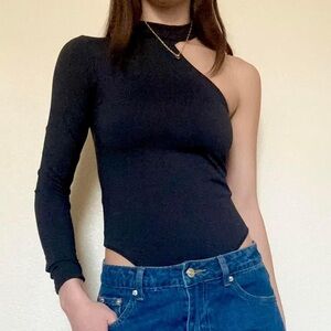 Abercrombie One-Shoulder Long Sleeve Mock Neck Bodysuit