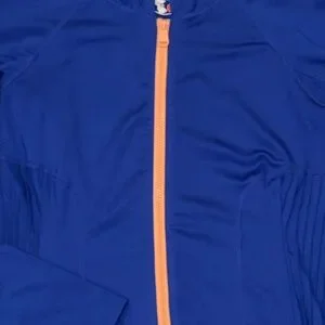 Fit: Fitted; medium compression; zip up silhouette; hits just above waist