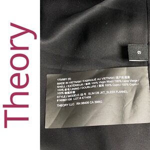 Command attention with this sophisticated Theory Treeca 100% Virgin Wool flannel charcoal gray suit set. The impeccably tailored double-breasted blazer features a refined notched lapel and sleek flap pockets, exuding timeless elegance. Perfectly complementing the jacket, the matching pants offer a flattering silhouette with a comfortable pull-on waist, ensuring both style and ease. This versatile ensemble is ideal for impactful business meetings, elegant evening events, or sophisticated travel.