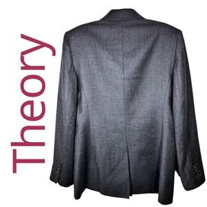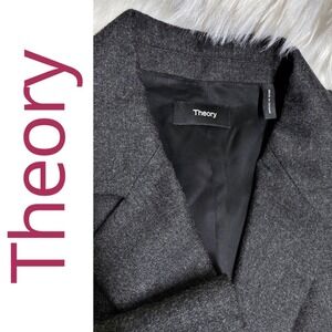 THEORY Treeca Virgin Wool Flannel Gray Double Breasted Blazer Pants Suit Set , 6
