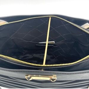 This stylish black quilted handbag features luxurious gold chain accents, perfect for any occasion. Its sleek design and elegant details make it a must-have accessory.