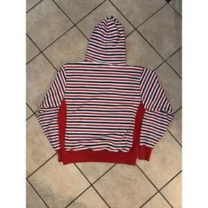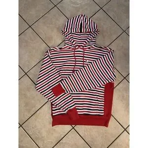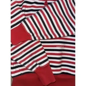 Champion Reverse Weave Hoodie Large Striped Red Black White Pullover Sweatshirt