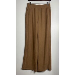 Halara high-waisted wide leg pants in a brown corduroy. These pants feature a comfortable elastic waistband and functional side pockets, offering both style and practicality. The wide leg silhouette provides a relaxed yet fashionable look.