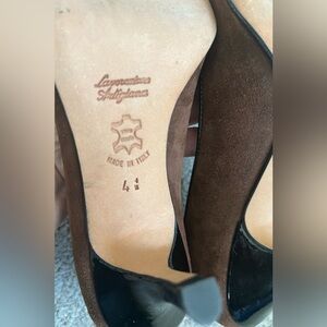 Butter Suede Pointed Toe Colorblock Pump Black Brown Size 4 1/2 Italy