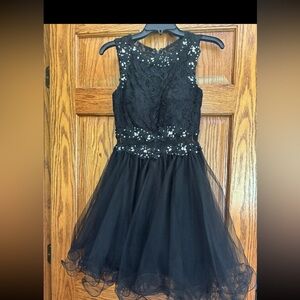 This elegant black lace dress is perfect for any special occasion. The intricate lace detailing adds a touch of sophistication and style. #hoco formal wear smoke free great condition