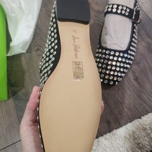 Add eye-catching appeal to tailored looks with the Michaela Mary Jane flat from Sam Edelman. Flashy circular jewels embellish the fabric upper while the squared off toe adds a modern finish.