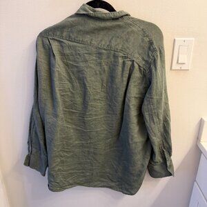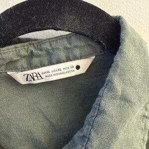 ZARA Olive Green Linen Button Down Shirt | Relaxed Fit | Size XL