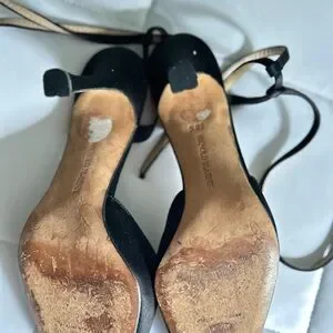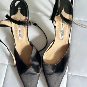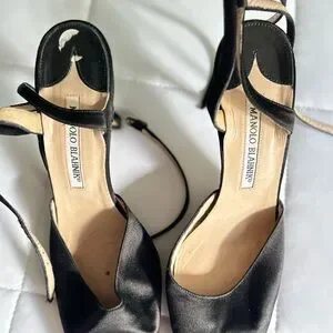 Chic black satin heels with elegant straps. Ideal for formal events. Original Manolos