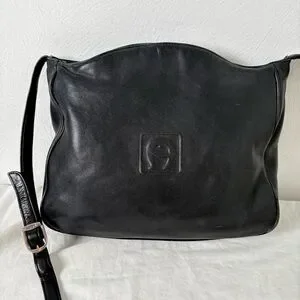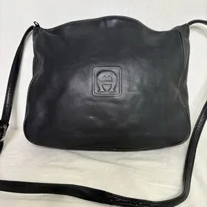 ETIENNE AIGNER Vintage Embossed Big Logo Minimalist Leather Crossbody Bag Purse