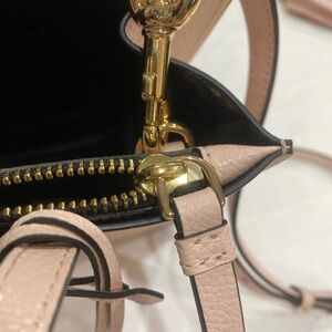 Stylish mini bag by Marc Jacobs. Elegant pink leather. Gold-tone hardware. Perfect for any occasion.