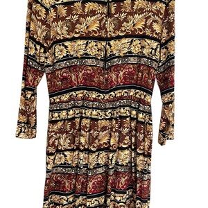 Chic floral dress by Sabino Petites. Features a striking black and gold pattern.