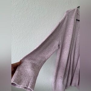 Chic and cozy open-front cardigan. Soft lavender hue. Ideal for layering.