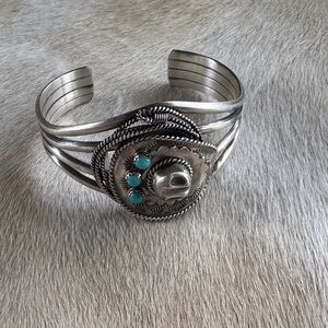 Navajo Bobby Platero Sterling Silver and Turquoise Cowboy Hat Bracelet