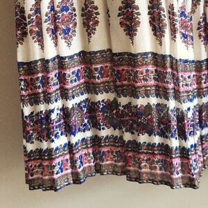 A rare and versatile piece from Madewell, this skirt features a pleated midi silhouette with a timeless diamond-floral paisley print in earthy tones. Originally designed with a tie-waist belt (missing), but the skirt wears beautifully as is and can easily be styled with your own belt for a custom look.