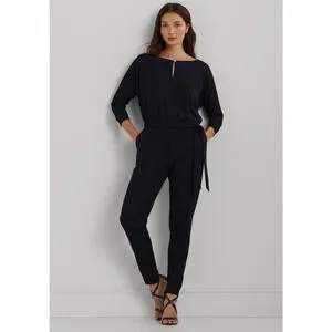 Lauren Ralph Lauren Women Belted Jersey Dolman Sleeve Jumpsuit Navy Size S
