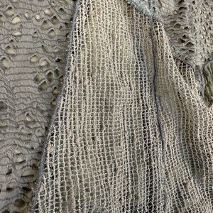 Elevate your boho wardrobe with this unique Feratelli women’s top in size medium. This elegant taupe and tan embellished tunic features intricate eyelet mesh detailing, ruffled accents, ribbon ties, and sparkling sequins for a stylish, artsy vibe. The 3/4 sleeves and asymmetric hem and lined body add a flowy, design perfect for casual outings, festivals, or layering. Crafted from soft 100% polyester fabric for all-day comfort—hand wash cold, do not tumble dry, iron on low if needed. Approximate measurements: pit-to-pit 19” (laid flat), length 28” from shoulder to hem. In excellent pre-owned condition with no flaws. Ideal for boho chic, cottagecore, or romantic styles. Bundle for discounts! #Feratelli #BohoTop #SequinBlouse #ArtsyFashion #MeshTunic #RuffleTop