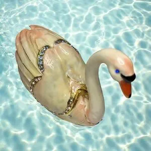 Vintage Enamel Swan Trinket Box