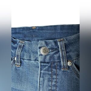 These 7 For All Mankind women’s skinny jeans offer a flattering fit with the comfort of stretch. Designed in a medium blue wash, they feature a mid-rise waist, classic five-pocket styling, and a skinny leg silhouette. Made with a blend of cotton, polyester, and spandex for flexibility and all-day wear. Please note flaw pictured.