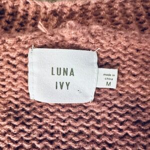 Luna Ivy Pink Rose 3-D Knit Button Front Cardigan Sweater Medium Cottagecore