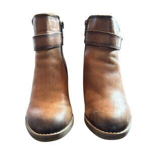 Pikolinos Leather Ankle Boots Cognac Brown Block Heel Zip Strap Detail Size 39