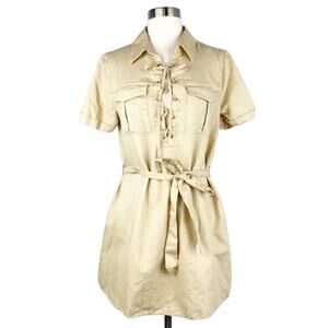 L'ACADEMIE REVOLVE Khaki Tan Cream Safari Lace-Up Short Sleeve Tie Dress Small