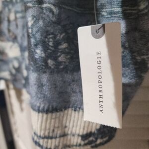 Rare Pilcro Alani Mock Neck Mystical Garden Cashmere Cream & Blue Sweater NWT S