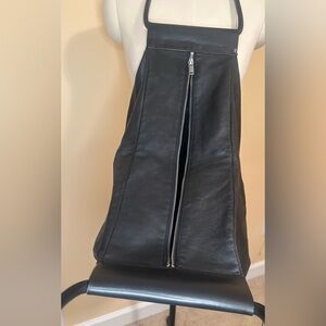 Discover the elegance of this real black leather women's bag. Perfect for any occasion, it combines style and functionality. Very roomy. Has zipper in the front with deep pocket and fabric pocket in the lining with COS logo on it.