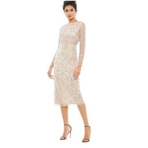 Mac Duggal dress, beaded cocktail dress, tea-length gown, sheer sleeve dress, formal dress, wedding guest dress, evening dress, special occasion dress, cocktail attire, NWT designer dress, luxury dress, bridesmaid alternative, cocktail party outfit, elegant dress, women’s formalwear, embellished gown