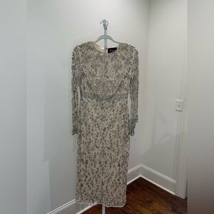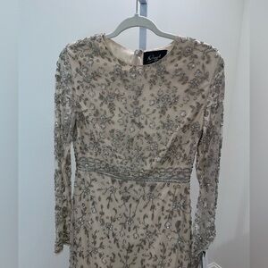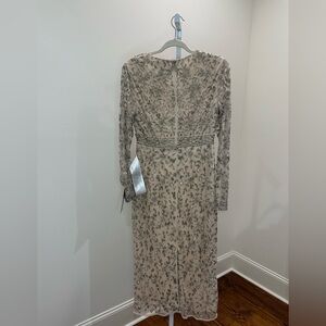 Mac Duggal 10812 Beaded Tea-Length Dress Sheer Sleeves Porcelain Size 6 NWT