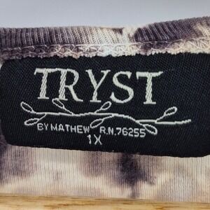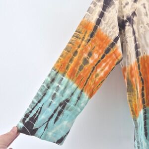 Vtg Y2K Tryst by Mathew 1X Tie Dye Cotton Top Long Sleeve Boho Hippie USA Brown